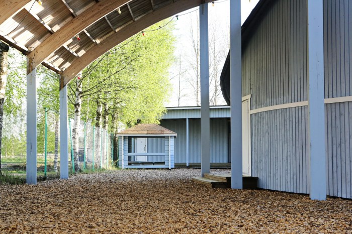 Perinteinen tanssilava luonnonkauniilla jokitörmällä